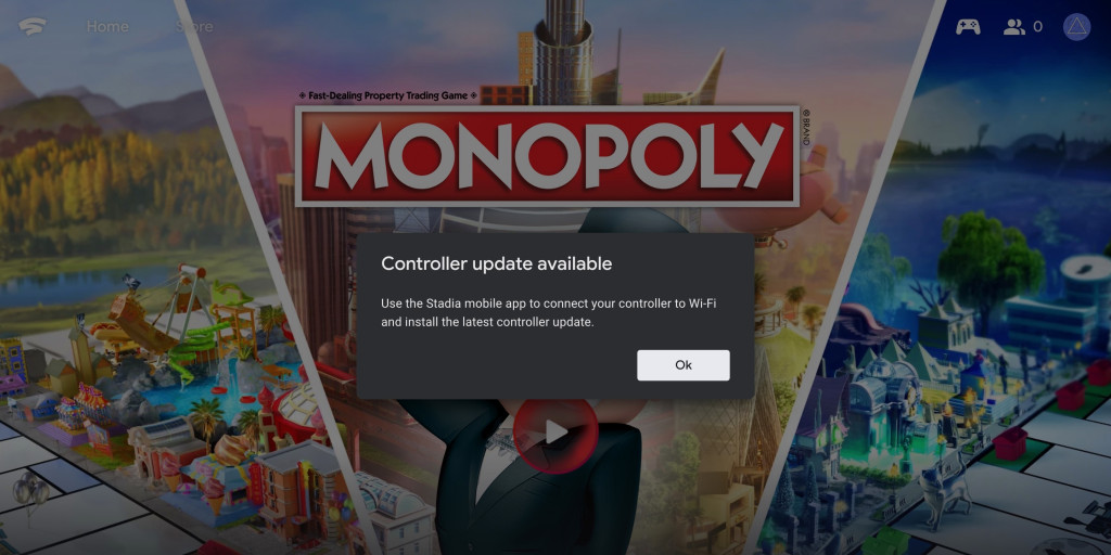 El sitio web ahora solicita a los usuarios que instalen una actualización de Stadia Controller disponible.