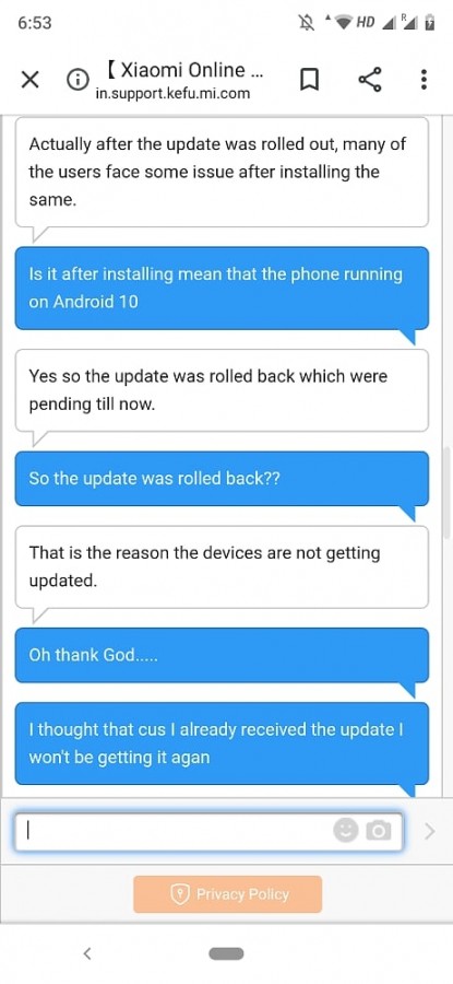 Según Xiaomi Customer Care, hubo demasiadas quejas y ahora la actualización se volverá a publicar una vez que se resuelvan.